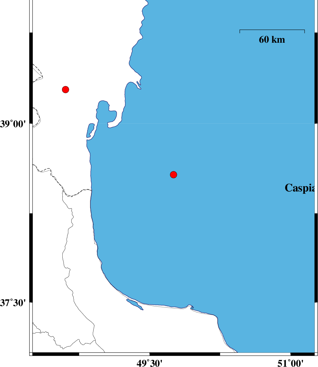 2020/08/31 | 16:44:03.6 | 21:14:03.6 | 38.574 | 49.754 | 12 | ML3.3 | Caspian Sea, 80 km North-East of Astara | ||