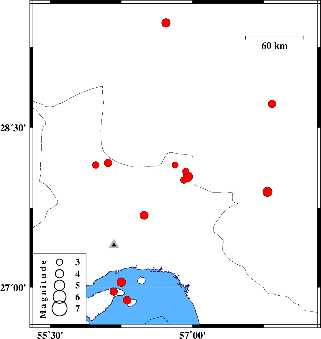 2020/07/27 | 11:12:37.5 | 15:42:37.5 | 27.05 | 56.25 | 18 | ML:4.3 | Persian Gulf, 11 km of Qeshm | ||