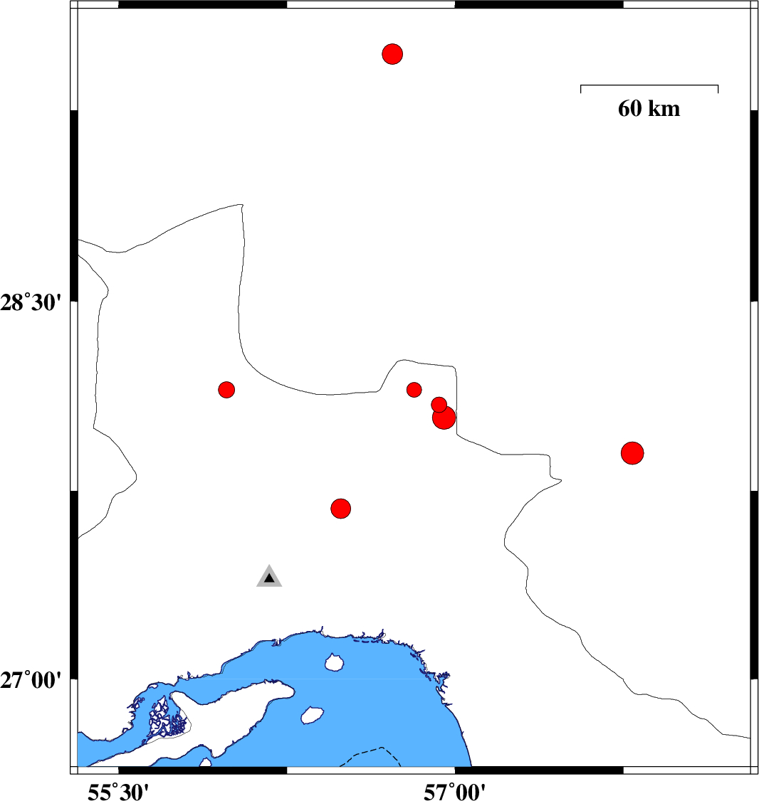 | 2020/08/07 | 14:53:32.4 | 19:23:32.4 | 28.15 | 56.817 | 17 | ML3 | Hormozgan Province, 91 km South-East of Hajiabad | ||
