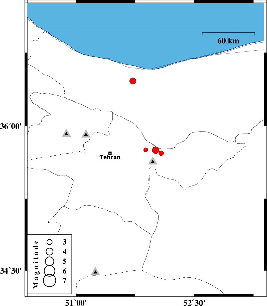 | 2020/05/25 | 16:00:54.9 | 20:30:54.9 | 36.46 | 51.72 | 10 | ML3.6 | Mazandaran Province, 29 km South-East of Nowshahr |