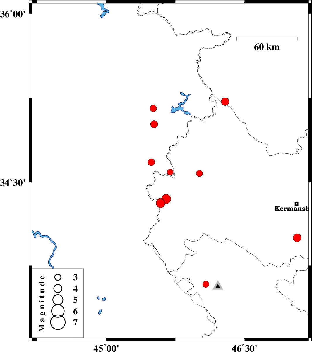 | 2020/07/07 | 13:10:23.8 | 17:40:23.8 | 34.32 | 45.59 | 14 | ML4 | Kermanshah Province, 22 km South of Qasr-E-Shirin | ||