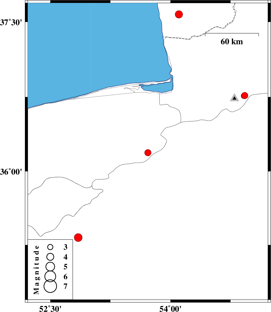 | 2024/10/16 | 13:03:33.1 | 16:33:33.1 | 36.764 | 54.928 | 12 | ML3.6 | Golestan Province, 17 km South of Ali Abad | ||