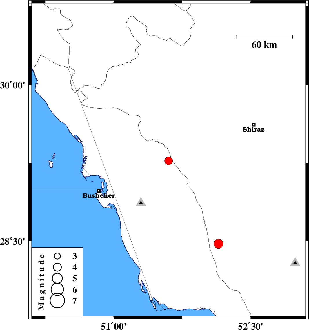 | 2024/10/26 | 17:08:18.1 | 20:38:18.1 | 29.273 | 51.601 | 12 | ML4 | Bushehr Province, 39 km South of Kazerun | ||