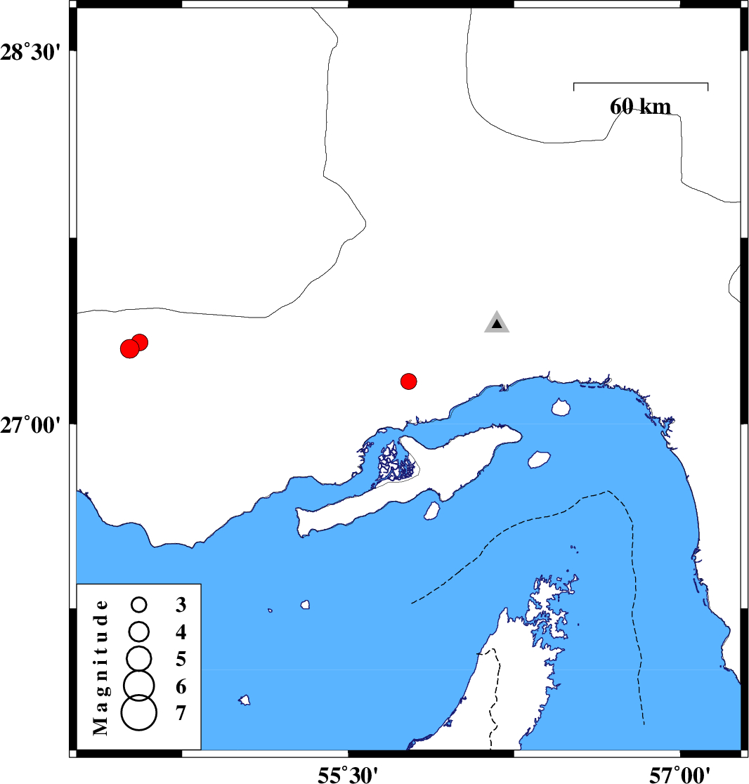 | 2024/10/29 | 03:44:26.1 | 07:14:26.1 | 27.172 | 55.773 | 12 | ML3.2 | Hormozgan Province, 50 km -West of Bandar-e abbas | ||