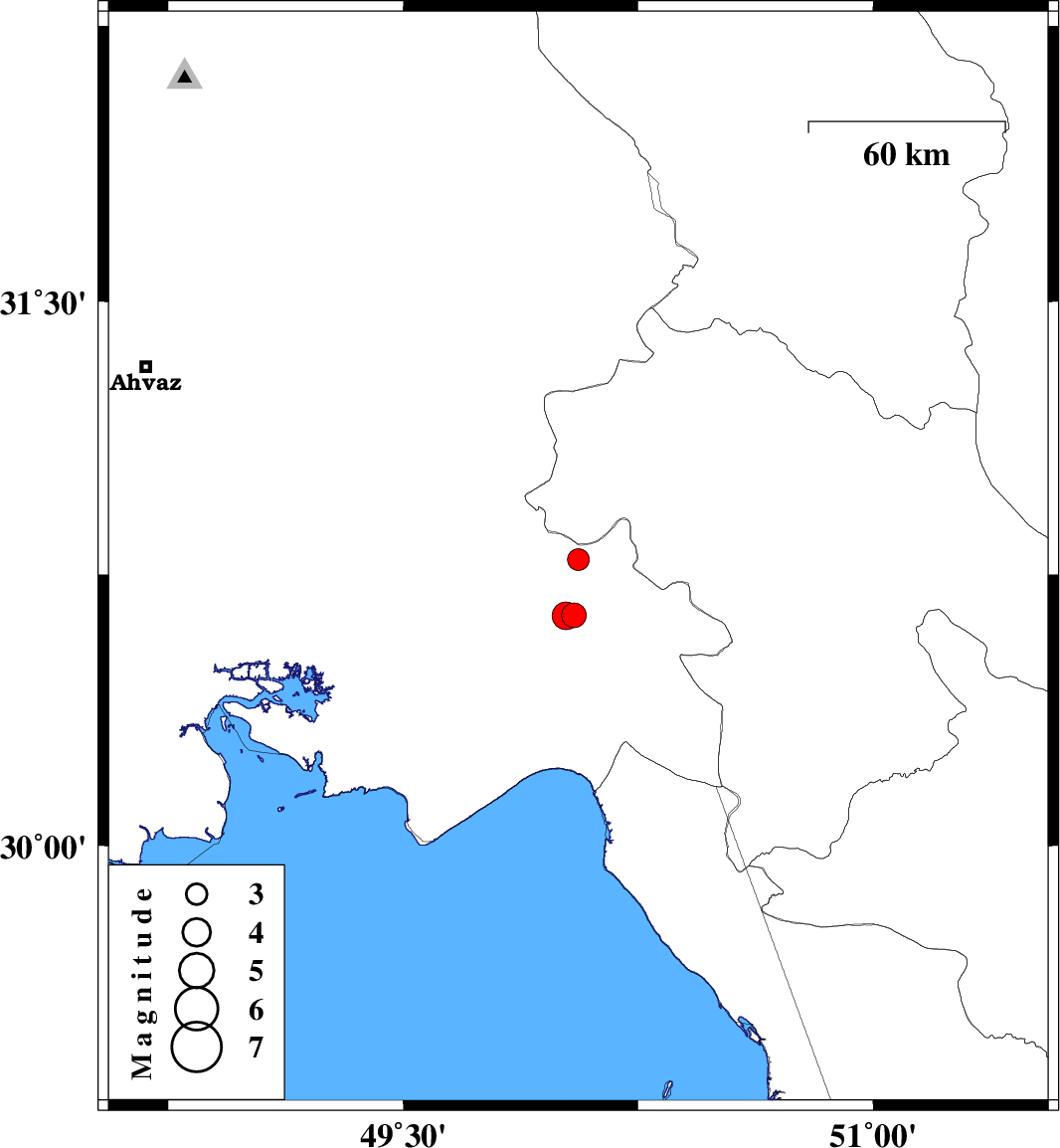 | 2024/11/08 | 04:01:46.4 | 07:31:46.4 | 30.791 | 50.059 | 10 | ML3.1 | Khoozestan Province, 28 km North-West of Behbahan |