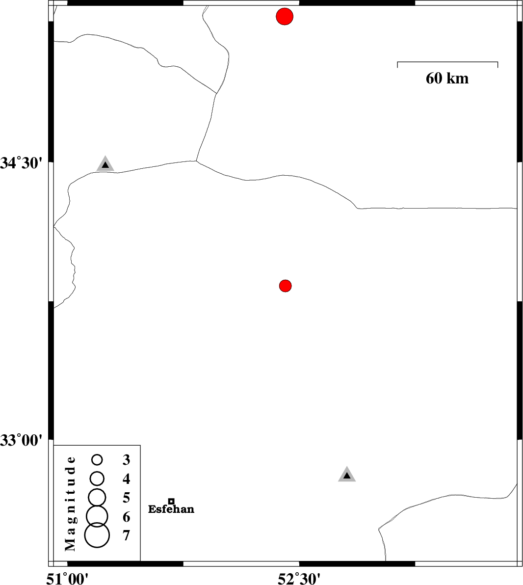 | 2024/11/16 | 22:57:22.4 | 02:27:22.4 | 33.834 | 52.41 | 12 | ML3.5 | Esfahan Province, 50 km North of Ardestan | ||