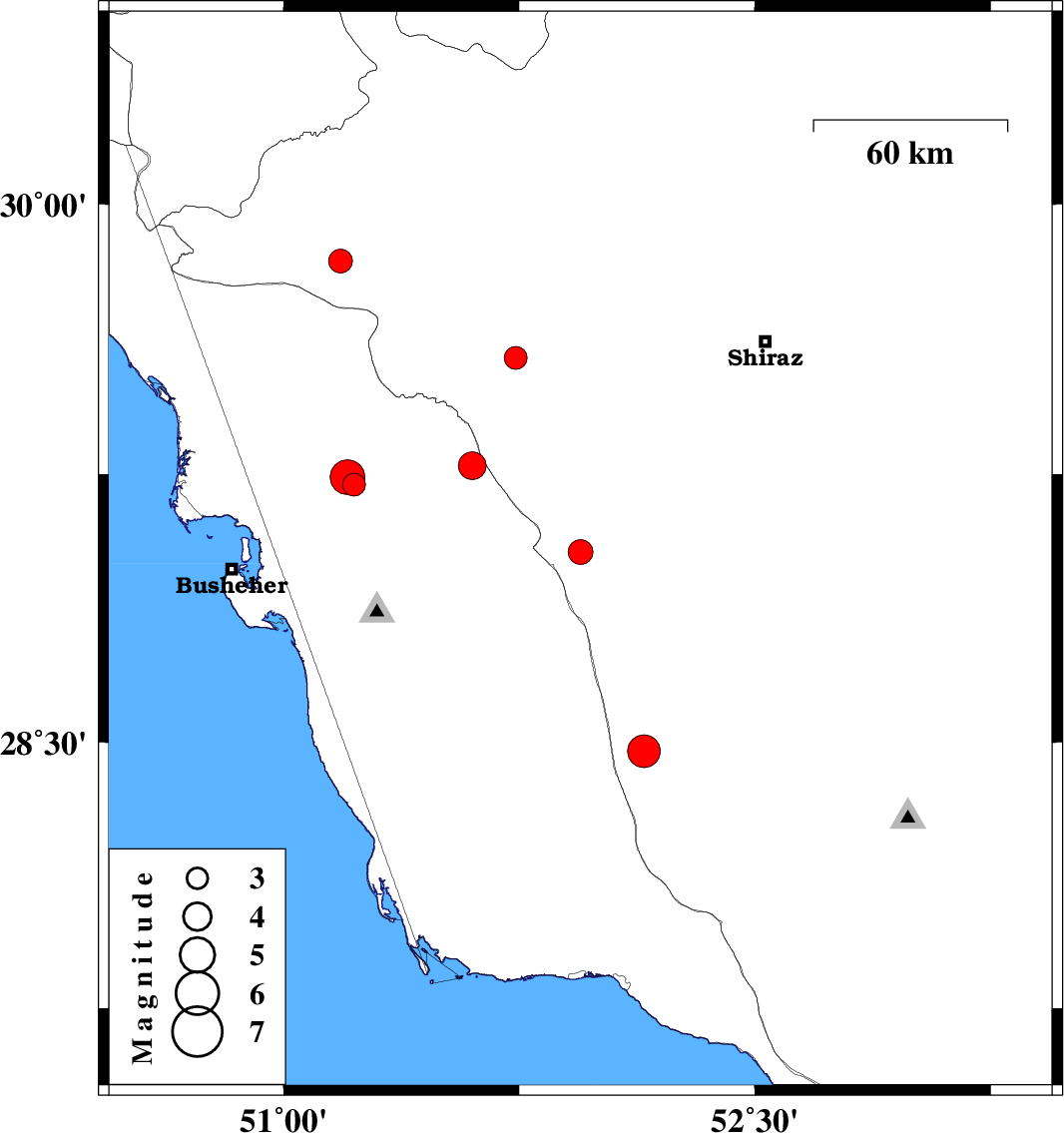 | 2024/10/26 | 17:08:18.1 | 20:38:18.1 | 29.273 | 51.601 | 12 | ML4 | Bushehr Province, 39 km South of Kazerun | ||