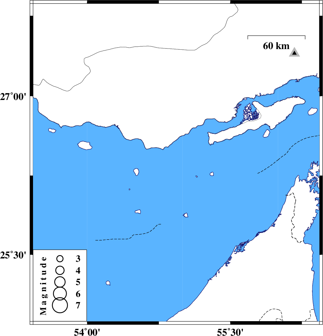 | 2024/11/20 | 21:47:04.1 | 01:17:04.1 | 26.365 | 54.933 | 12 | ML3.2 | Persian Gulf, 20 km South of Bandar-e lengeh |