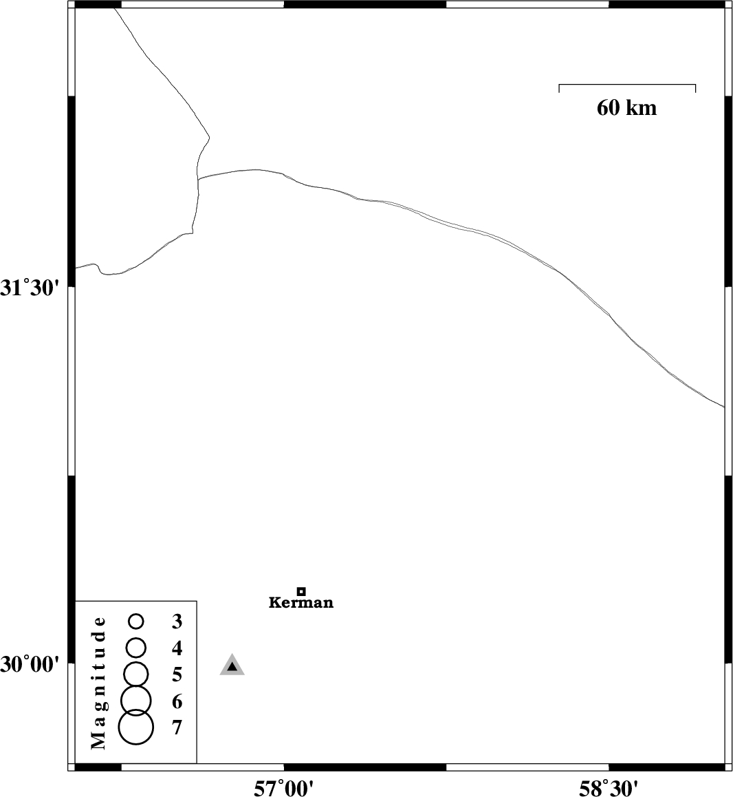 | 2024/12/20 | 13:38:55.7 | 17:08:55.7 | 31.096 | 57.535 | 12 | ML3.2 | Kerman Province, 71 km South-East of Ravar |