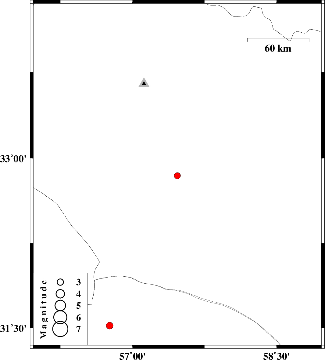 | 2024/12/25 | 21:43:48.2 | 01:13:48.2 | 32.846 | 57.467 | 12 | ML3 | Yazd Province, 98 km South-East of Tabas | ||