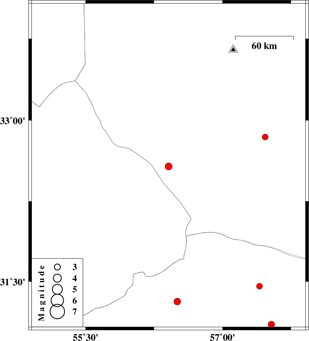 | 2024/12/26 | 08:33:20.3 | 12:03:20.3 | 31.456 | 57.405 | 10 | ML3 | Kerman Province, 60 km North-East of Ravar | ||