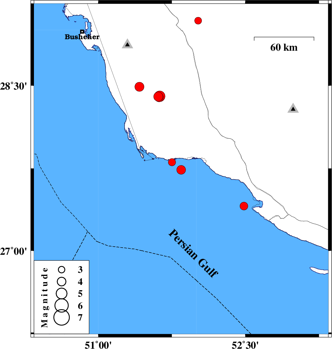 | 2024/12/05 | 13:42:23.7 | 17:12:23.7 | 28.489 | 51.419 | 12 | ML4.2 | Bushehr Province, 19 km South of Khormog | ||
