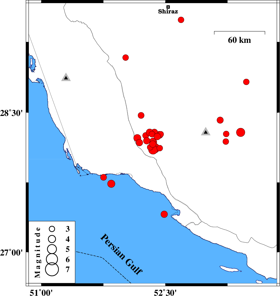 | 2024/12/23 | 06:31:51.5 | 10:01:51.5 | 27.408 | 52.485 | 20 | ML3.7 | Persian Gulf, 43 km South-West of Mehr | ||