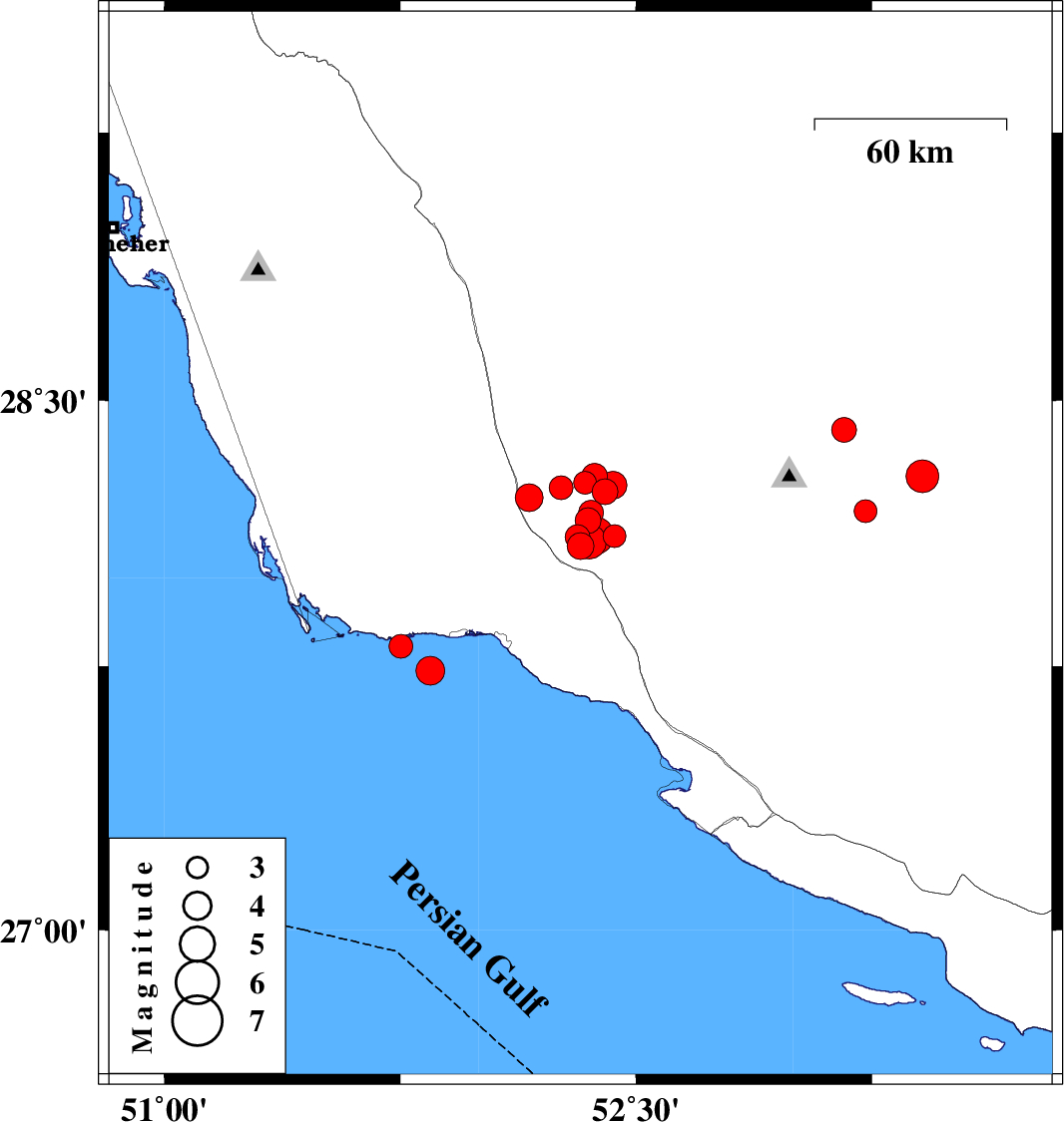 | 2025/01/10 | 01:38:52.4 | 05:08:52.4 | 28.118 | 52.431 | 8 | ML3.3 | Fars Province, 34 km North-East of Jam | ||