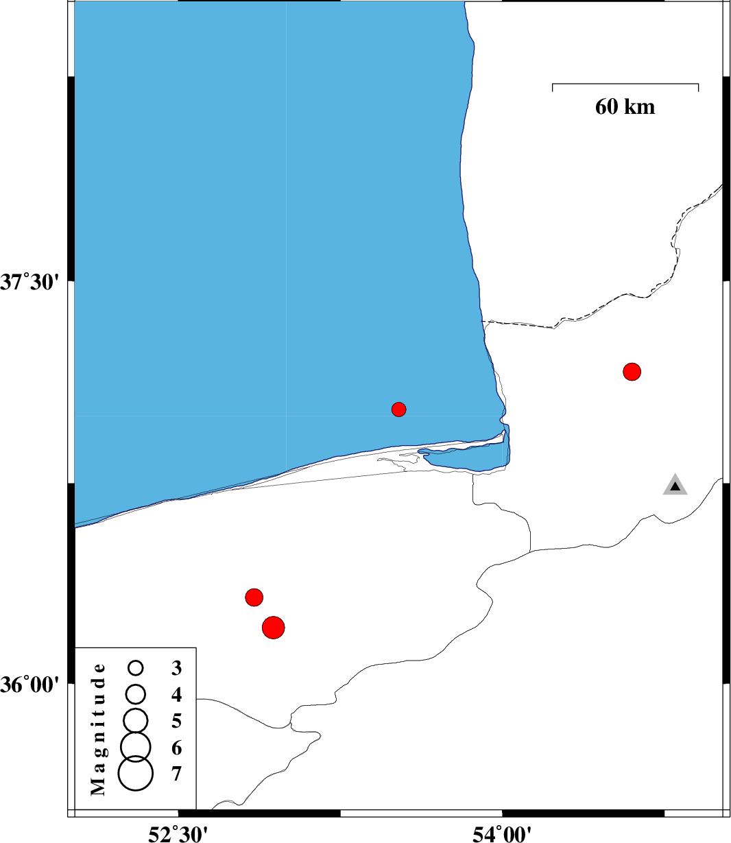 | 2025/01/10 | 14:07:32.1 | 17:37:32.1 | 37.024 | 53.52 | 10 | ML2.9 | Caspian Sea, 37 km North of Behshahr | ||