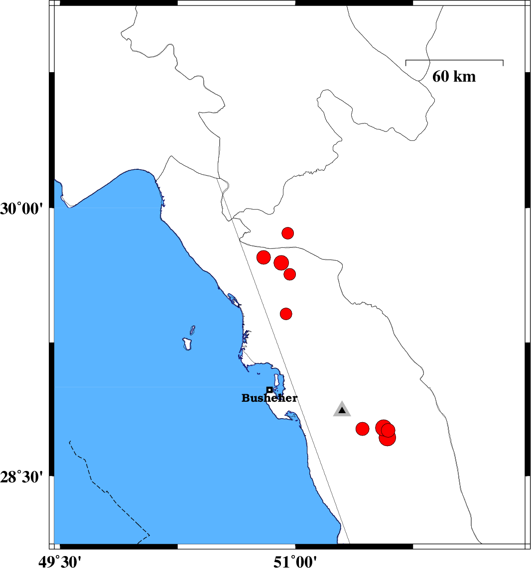 | 2025/01/16 | 19:20:52.1 | 22:50:52.1 | 29.568 | 51.123 | 12 | ML4.8 | Bushehr Province, 35 km North of Borazjan | ||