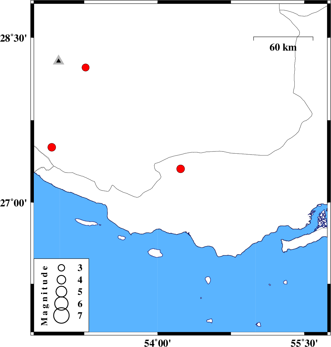 | 2025/01/21 | 20:49:41.6 | 00:19:41.6 | 27.503 | 52.918 | 10 | ML3.7 | Fars Province, 6 km of Mehr |