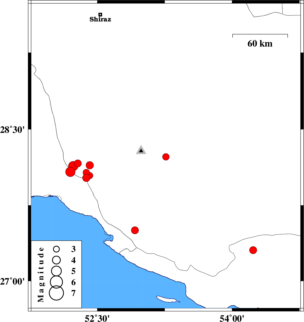 | 2025/01/18 | 01:37:13.2 | 05:07:13.2 | 28.044 | 52.416 | 12 | ML3.3 | Fars Province, 25 km North of Jam |