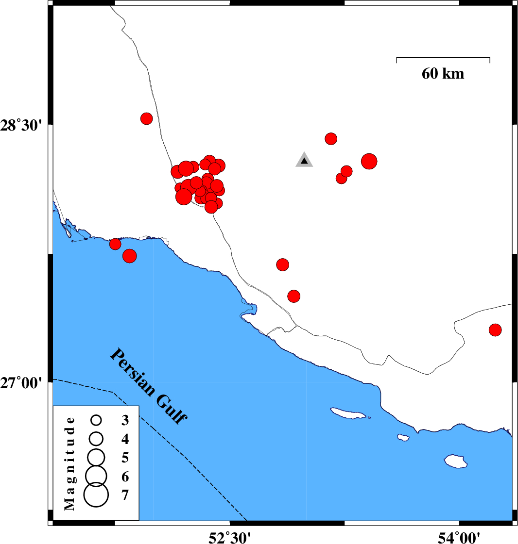 | 2025/01/04 | 19:36:16.0 | 23:06:16.0 | 27.806 | 51.752 | 12 | ML3.4 | Persian Gulf, 30 km -West of Bandar-e kangan |