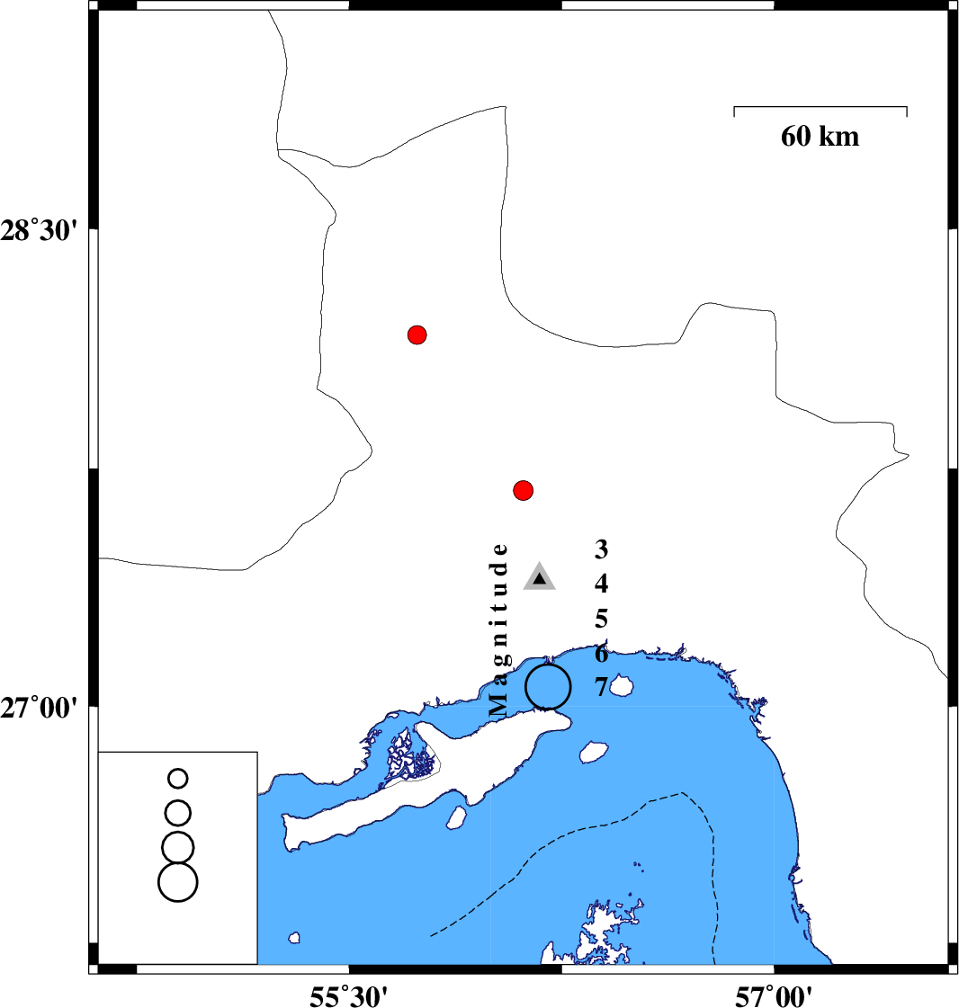 | 2025/01/22 | 21:17:31.1 | 00:47:31.1 | 28.168 | 55.739 | 12 | ML3 | Hormozgan Province, 22 km South-West of Hajiabad |