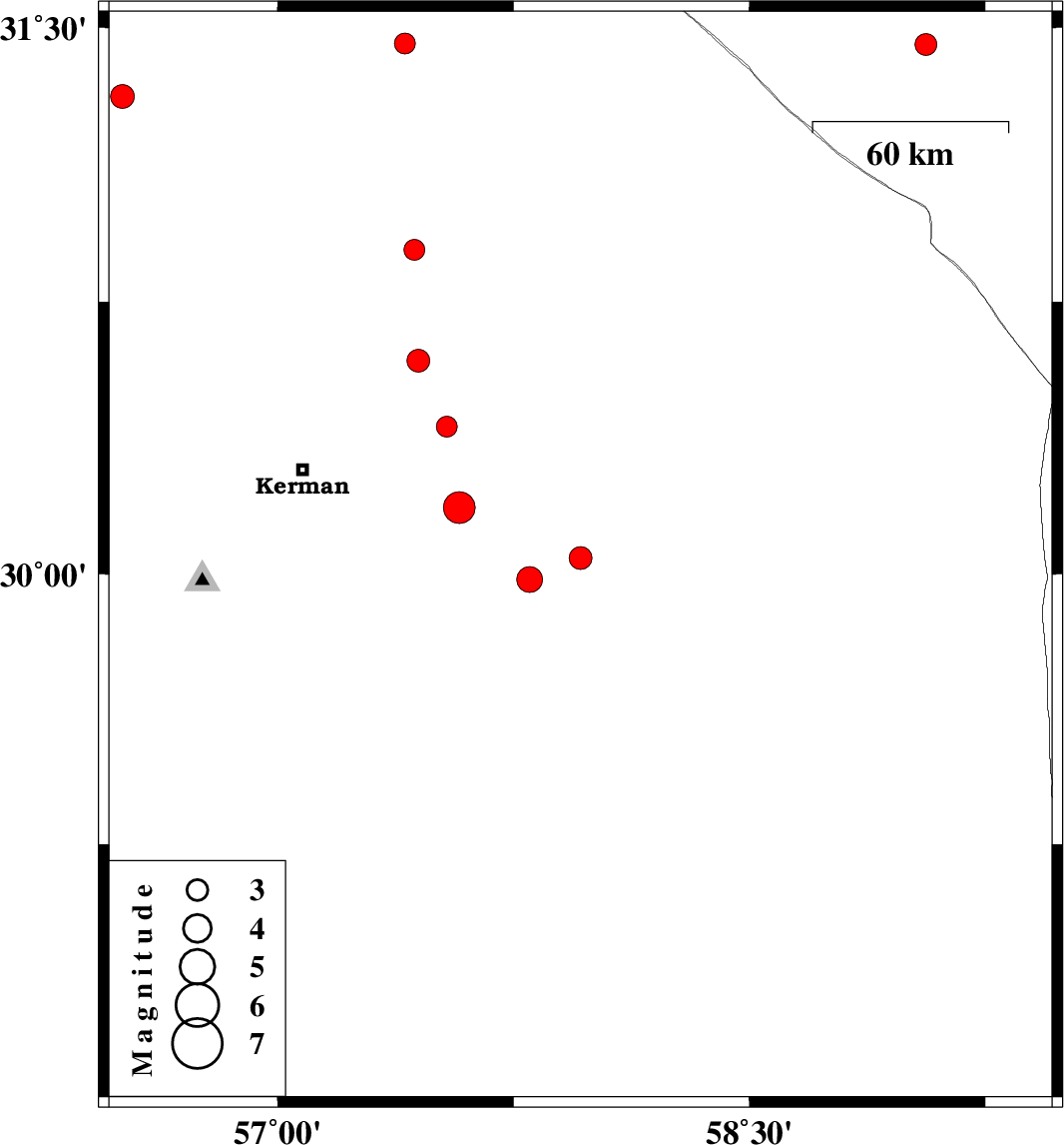 | 2024/12/26 | 08:33:20.3 | 12:03:20.3 | 31.456 | 57.405 | 10 | ML3 | Kerman Province, 60 km North-East of Ravar |