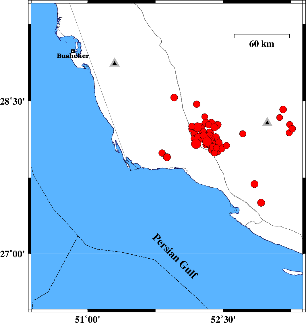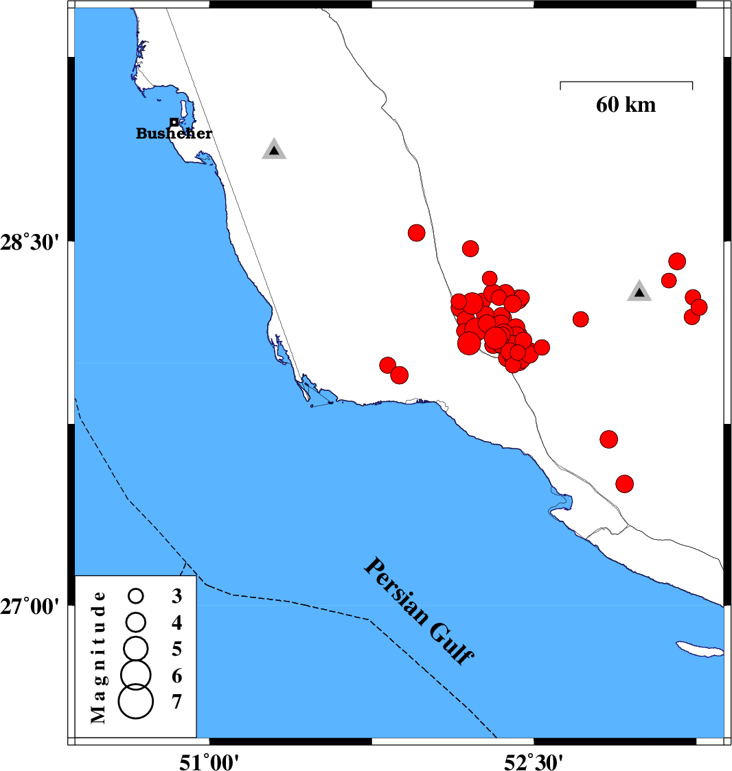 | 2025/02/04 | 15:29:33.1 | 18:59:33.1 | 27.95 | 51.877 | 12 | ML3.7 | Bushehr Province, 23 km North-West of Bandar-e kangan | ||