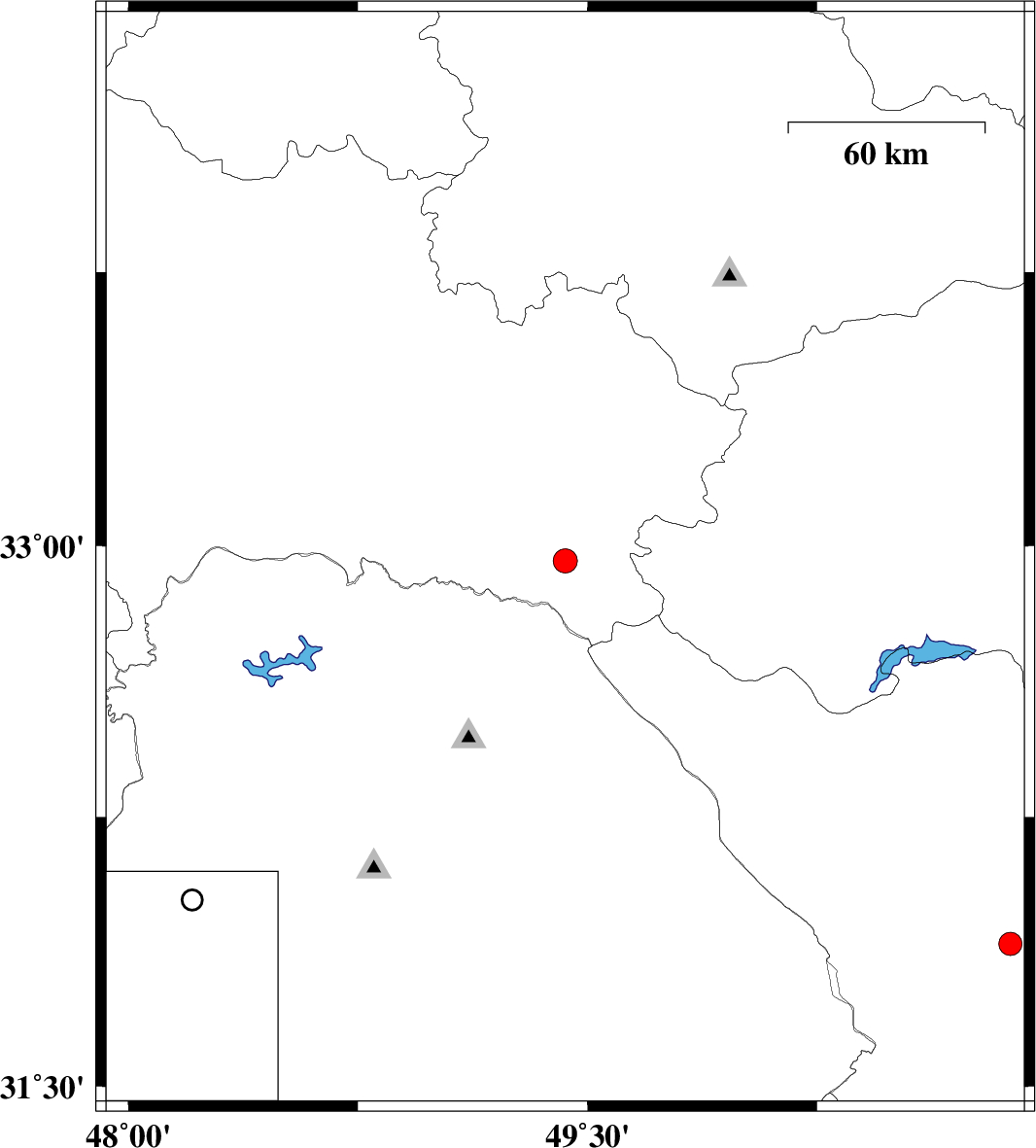 | 2025/02/10 | 09:26:48.8 | 12:56:48.8 | 32.959 | 49.427 | 12 | ML3.5 | Lorestan Province, 55 km South of Azna | ||