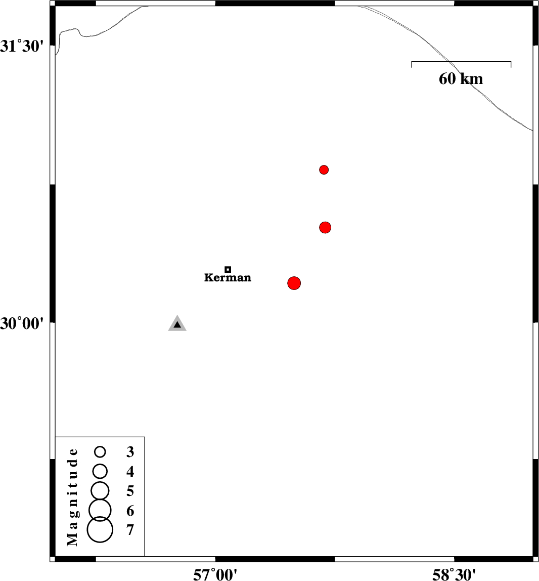 | 2025/02/15 | 01:25:09.4 | 04:55:09.4 | 30.213 | 57.494 | 12 | ML3.7 | Kerman Province, 41 km -East of Kerman | ||