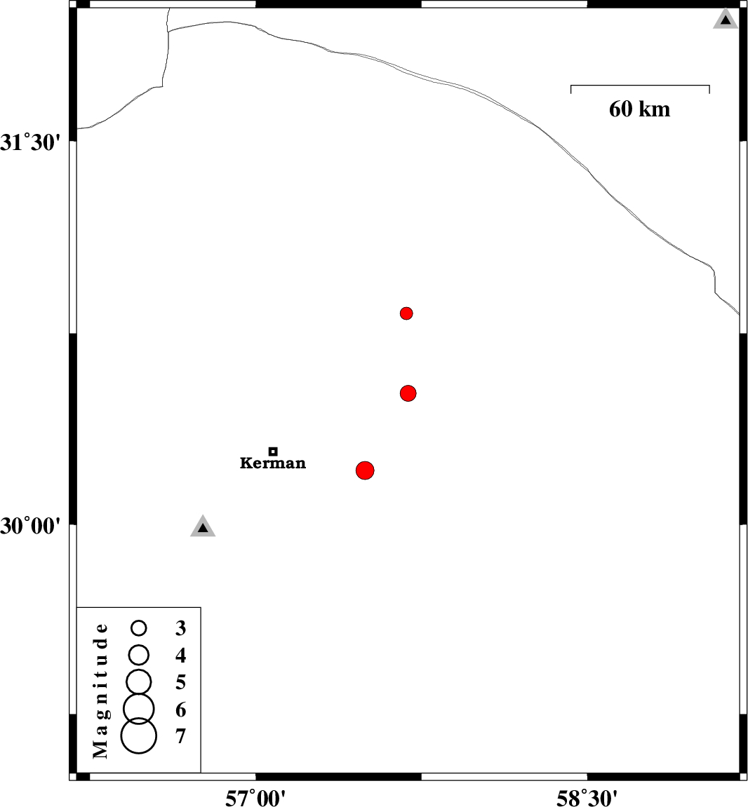 | 2025/02/15 | 01:25:09.4 | 04:55:09.4 | 30.213 | 57.494 | 12 | ML3.7 | Kerman Province, 41 km -East of Kerman | ||