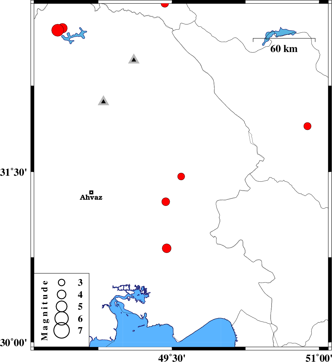 | 2025/01/30 | 08:37:40.9 | 12:07:40.9 | 30.83 | 49.446 | 14 | ML4.1 | Khoozestan Province, 26 km -West of Omidiyeh | ||