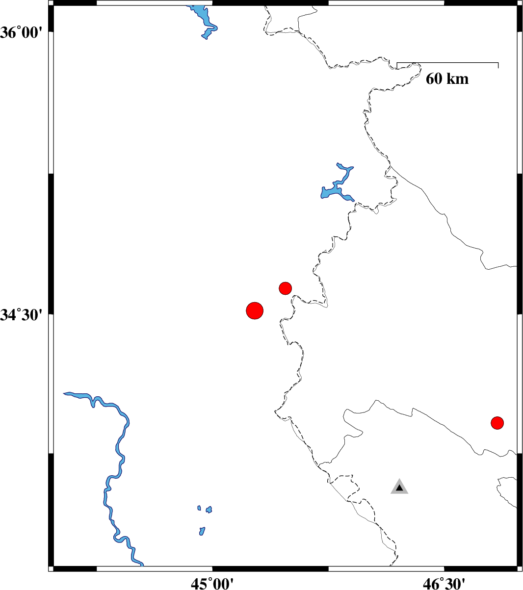 | 2025/03/03 | 21:56:43.4 | 01:26:43.4 | 34.638 | 45.471 | 12 | ML3.7 | Iraq, 17 km North-West of Qasr-E-Shirin | ||