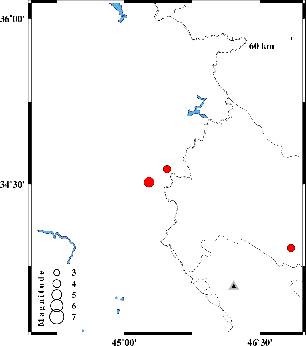 | 2025/03/01 | 16:06:36.1 | 19:36:36.1 | 33.914 | 46.843 | 12 | ML3.7 | Kermanshah Province, 31 km North-East of Sar Ableh |