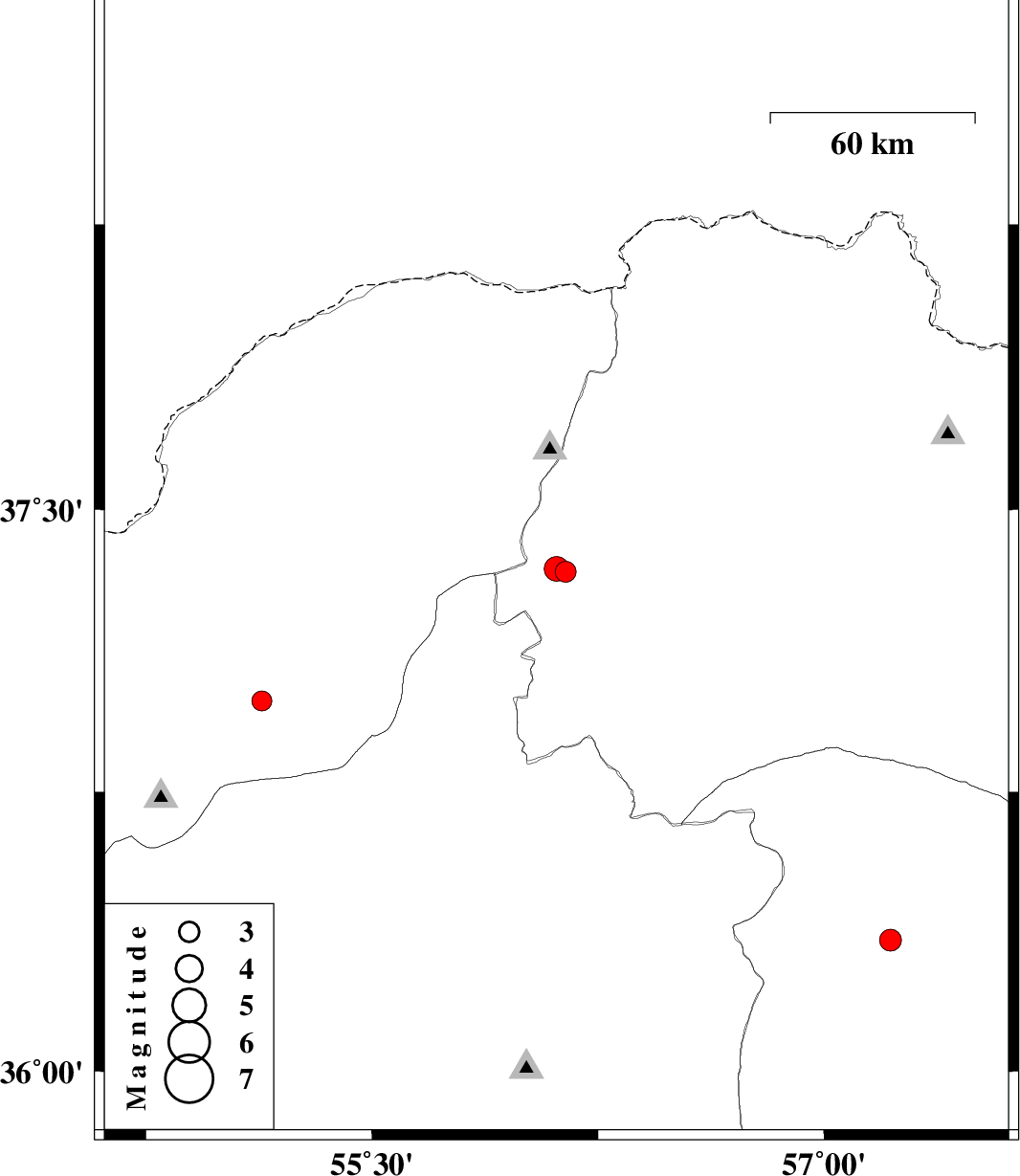 | 2025/02/06 | 01:38:50.0 | 05:08:50.0 | 36.353 | 57.221 | 12 | ML3.2 | Khorasan(center) Province, 44 km North-West of Sabzevar |