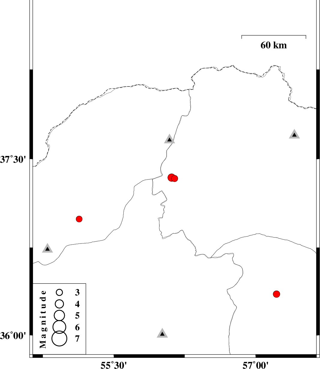 | 2025/02/06 | 01:38:50.0 | 05:08:50.0 | 36.353 | 57.221 | 12 | ML3.2 | Khorasan(center) Province, 44 km North-West of Sabzevar |