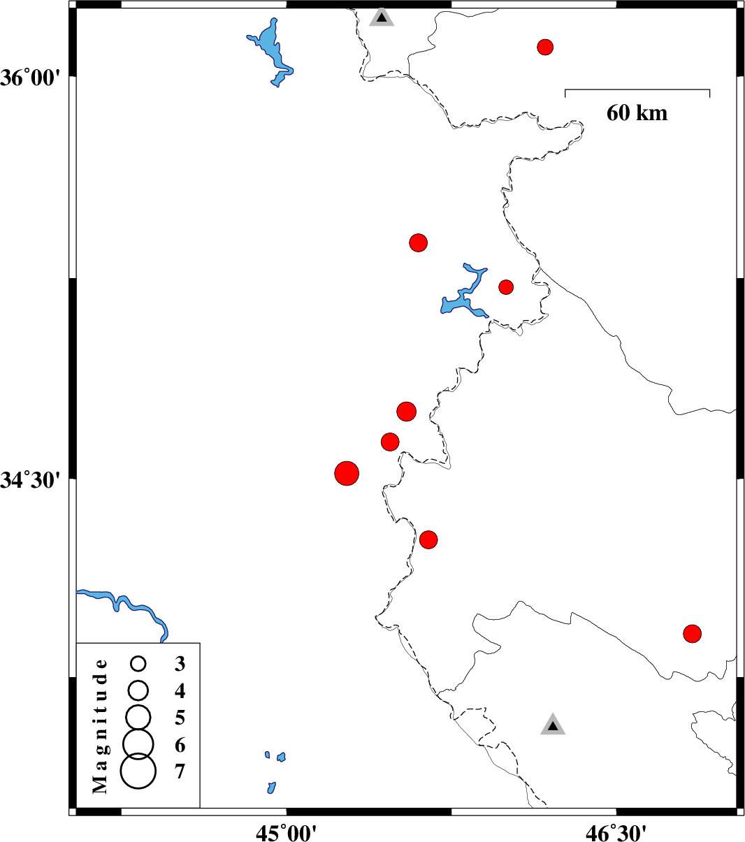 | 2025/03/01 | 16:06:36.1 | 19:36:36.1 | 33.914 | 46.843 | 12 | ML3.7 | Kermanshah Province, 31 km North-East of Sar Ableh | ||