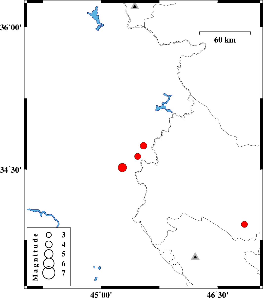 | 2025/03/01 | 16:06:36.1 | 19:36:36.1 | 33.914 | 46.843 | 12 | ML3.7 | Kermanshah Province, 31 km North-East of Sar Ableh |