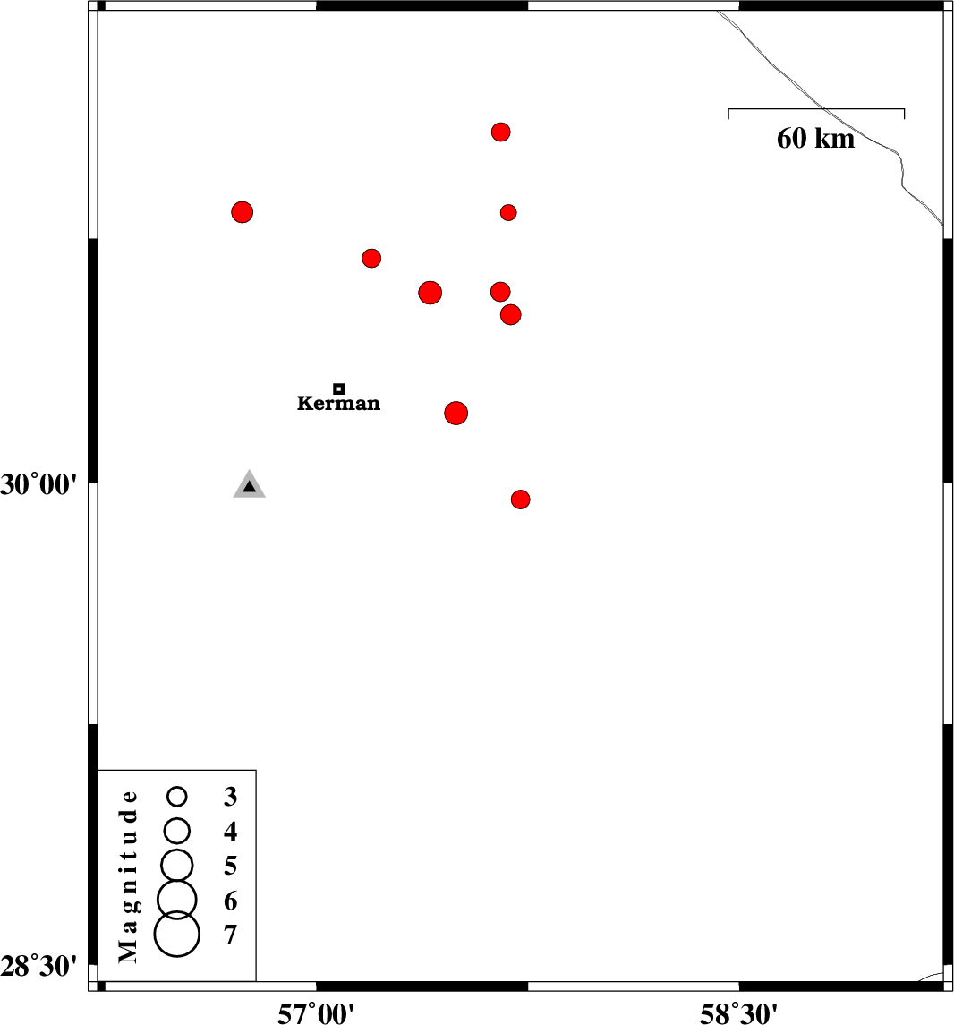 | 2025/02/15 | 01:25:09.4 | 04:55:09.4 | 30.213 | 57.494 | 12 | ML3.7 | Kerman Province, 41 km -East of Kerman | ||