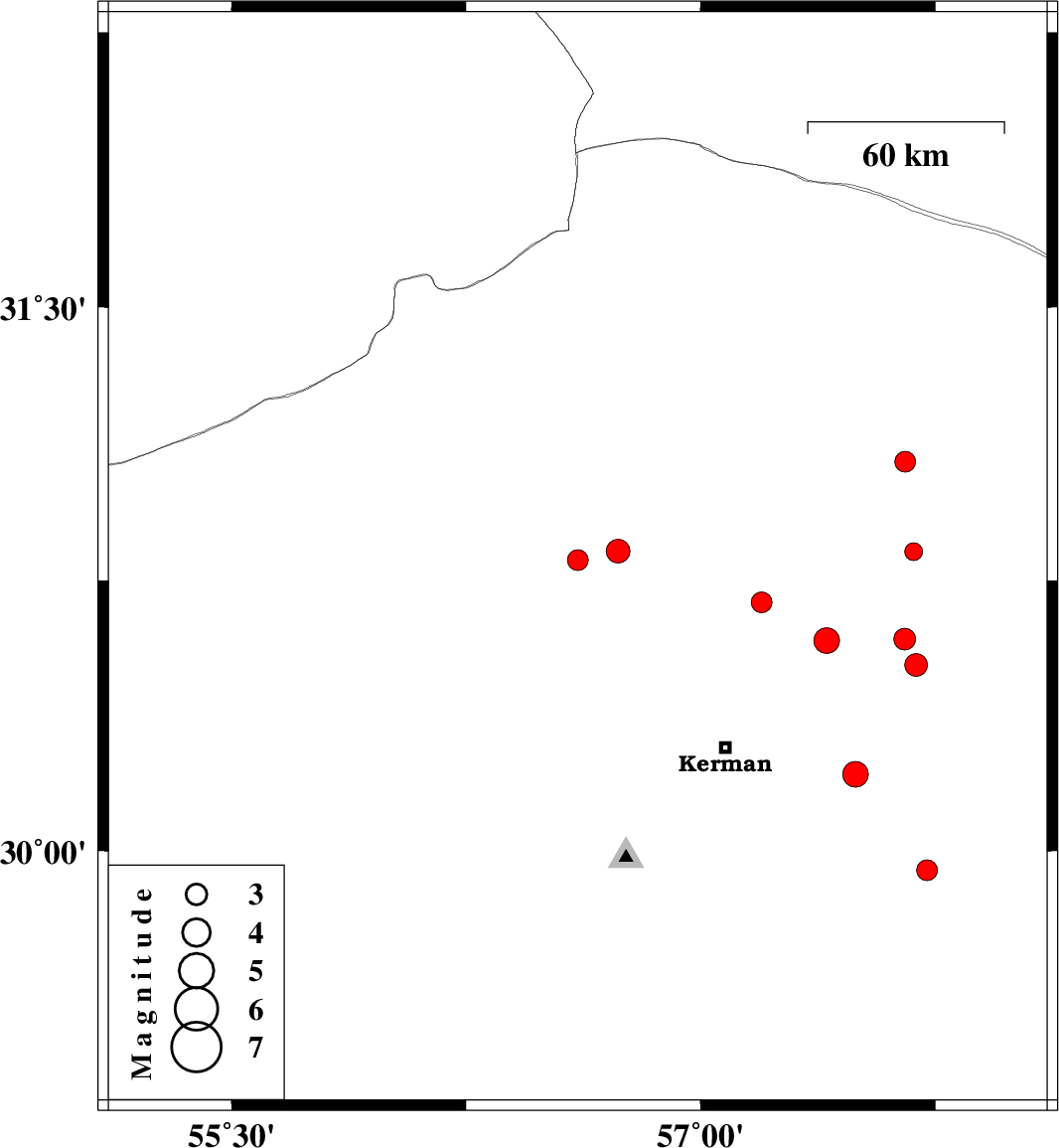 | 2025/02/15 | 01:25:09.4 | 04:55:09.4 | 30.213 | 57.494 | 12 | ML3.7 | Kerman Province, 41 km -East of Kerman | ||