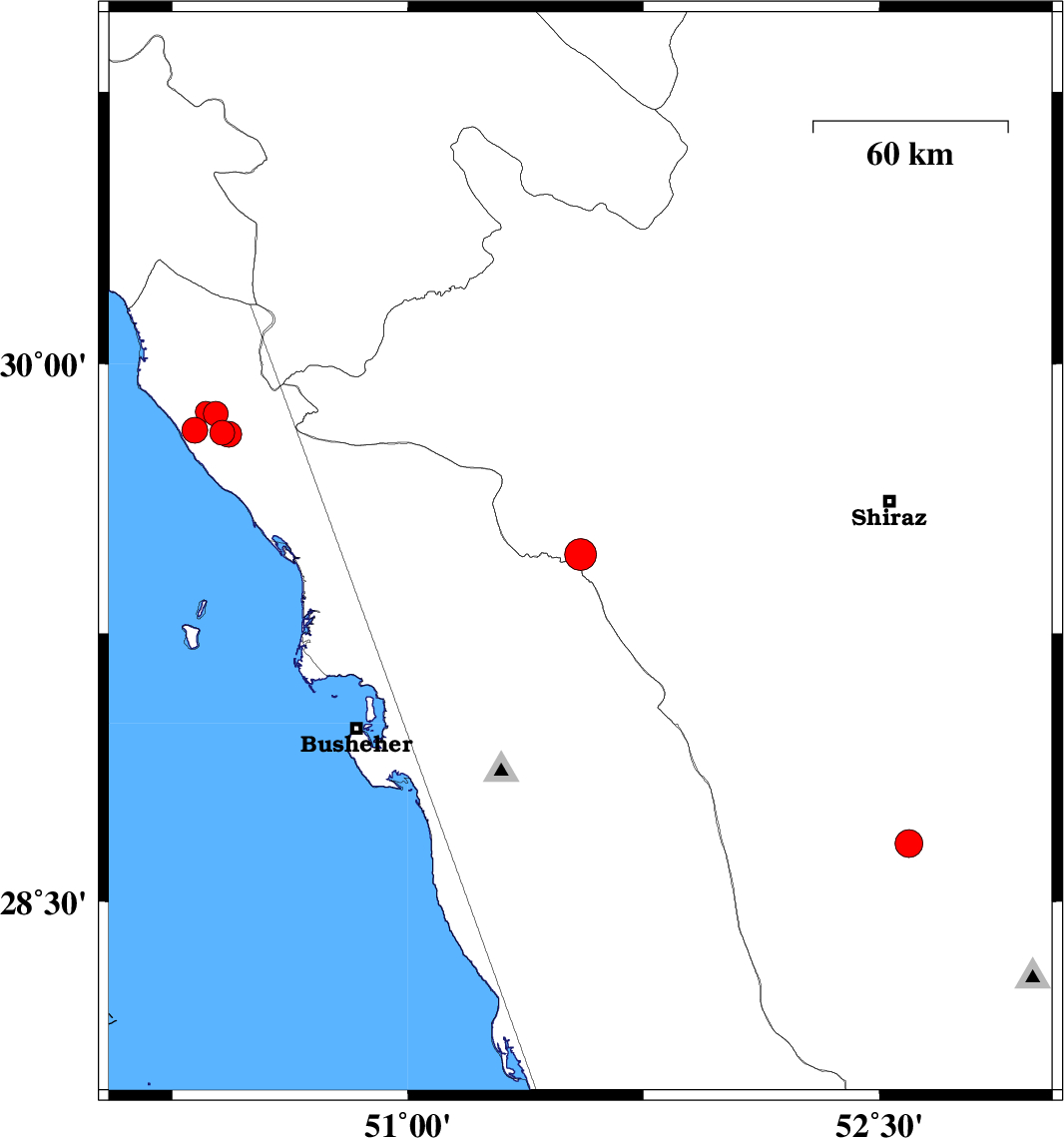| 2025/03/09 | 14:13:42.5 | 17:43:42.5 | 29.866 | 50.357 | 12 | ML3 | Khoozestan Province, 36 km North-West of Bandar-e genaveh | ||