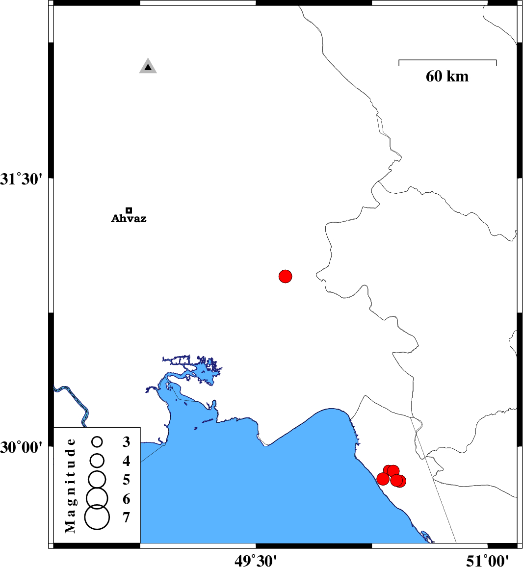 | 2025/03/09 | 14:13:42.5 | 17:43:42.5 | 29.866 | 50.357 | 12 | ML3 | Khoozestan Province, 36 km North-West of Bandar-e genaveh |