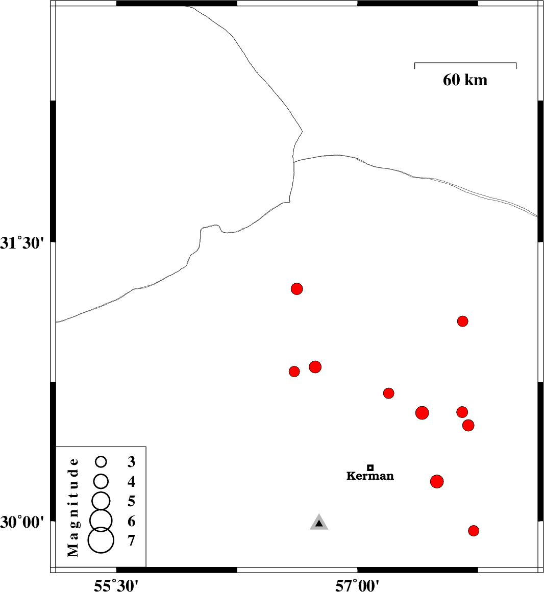 | 2025/02/16 | 00:25:57.3 | 03:55:57.3 | 30.689 | 57.194 | 12 | ML3 | Kerman Province, 46 km North-East of Kerman | ||
