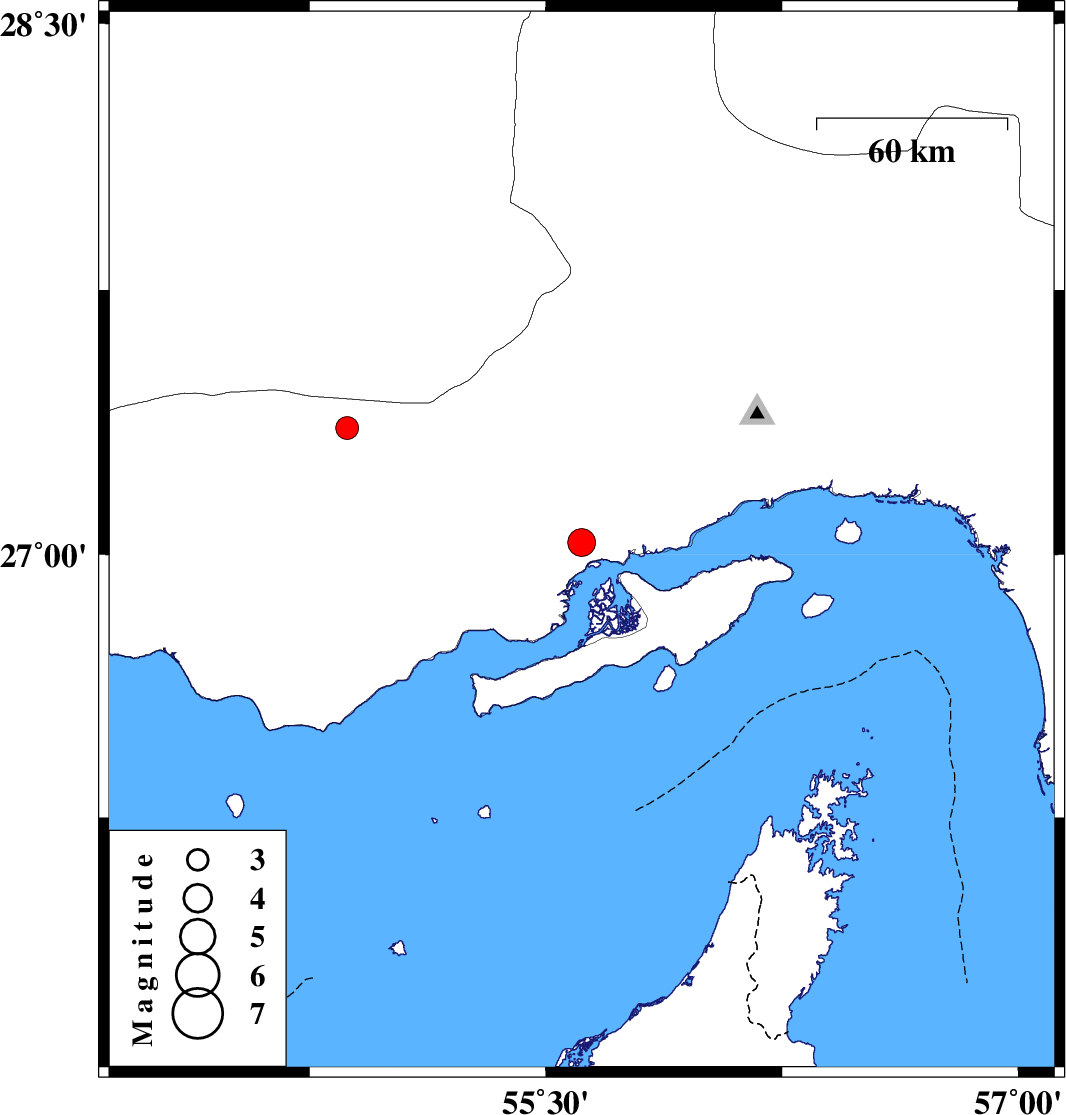 | 2025/03/22 | 23:43:10.3 | 03:13:10.3 | 27.035 | 55.614 | 12 | ML3.9 | Hormozgan Province, 65 km -West of Qeshm | ||