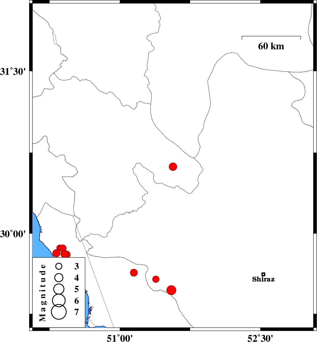 | 2025/03/09 | 14:13:42.5 | 17:43:42.5 | 29.866 | 50.357 | 12 | ML3 | Khoozestan Province, 36 km North-West of Bandar-e genaveh |