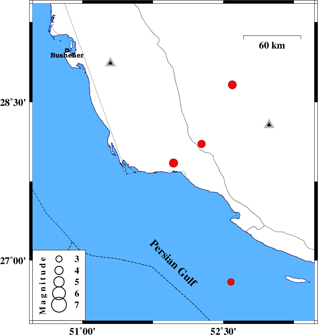 | 2025/03/20 | 22:43:46.5 | 02:13:46.5 | 27.924 | 51.969 | 12 | ML4.1 | Bushehr Province, 14 km of Bandar-e kangan | ||