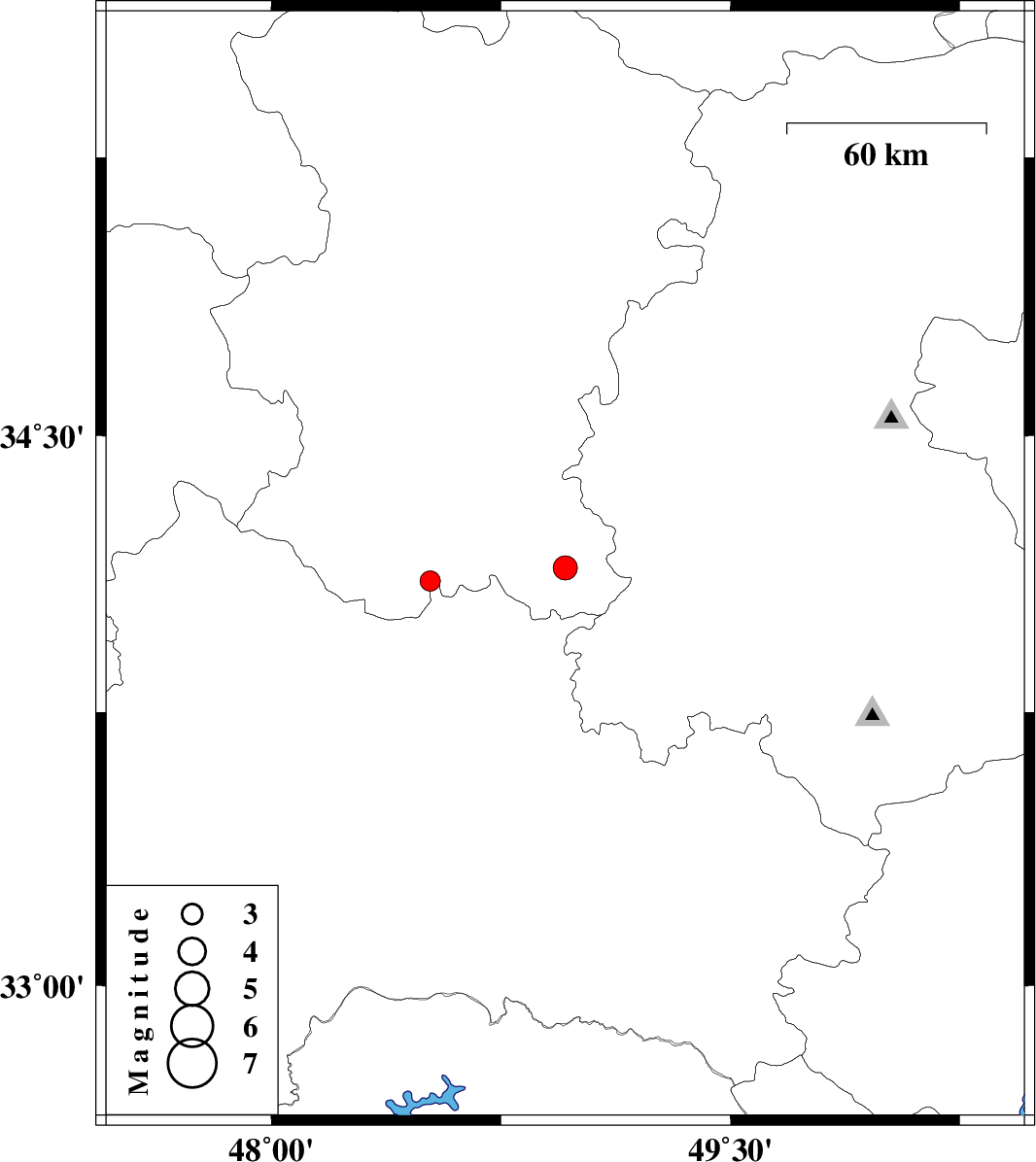 | 2025/03/30 | 13:45:04.8 | 17:15:04.8 | 34.143 | 48.96 | 7 | ML3.5 | Hamedan Province, 21 km South-East of Malayer | ||
