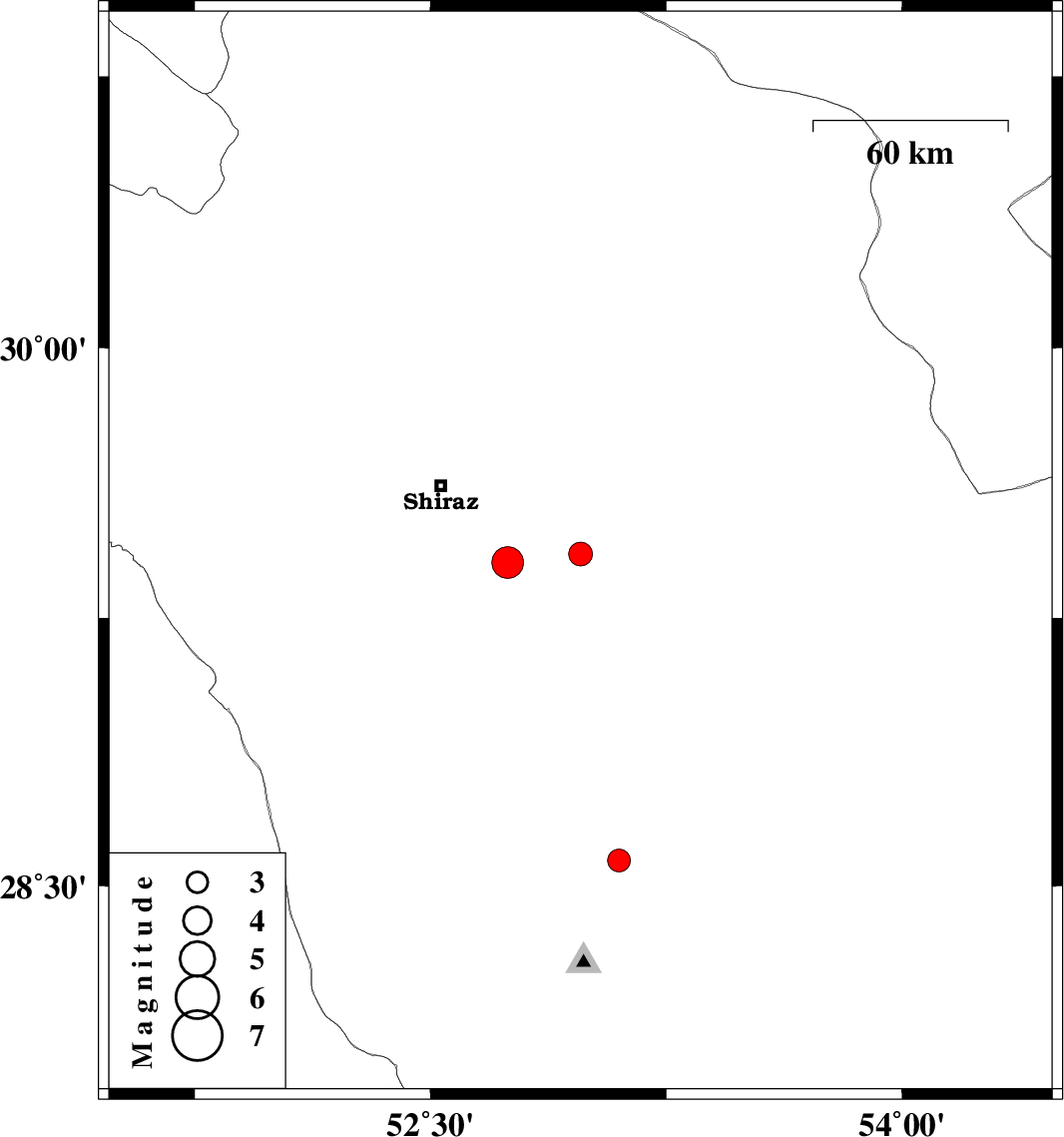| 2025/04/04 | 03:44:19.1 | 07:14:19.1 | 29.404 | 52.746 | 12 | ML4.5 | Fars Province, 32 km South-East of Shiraz |