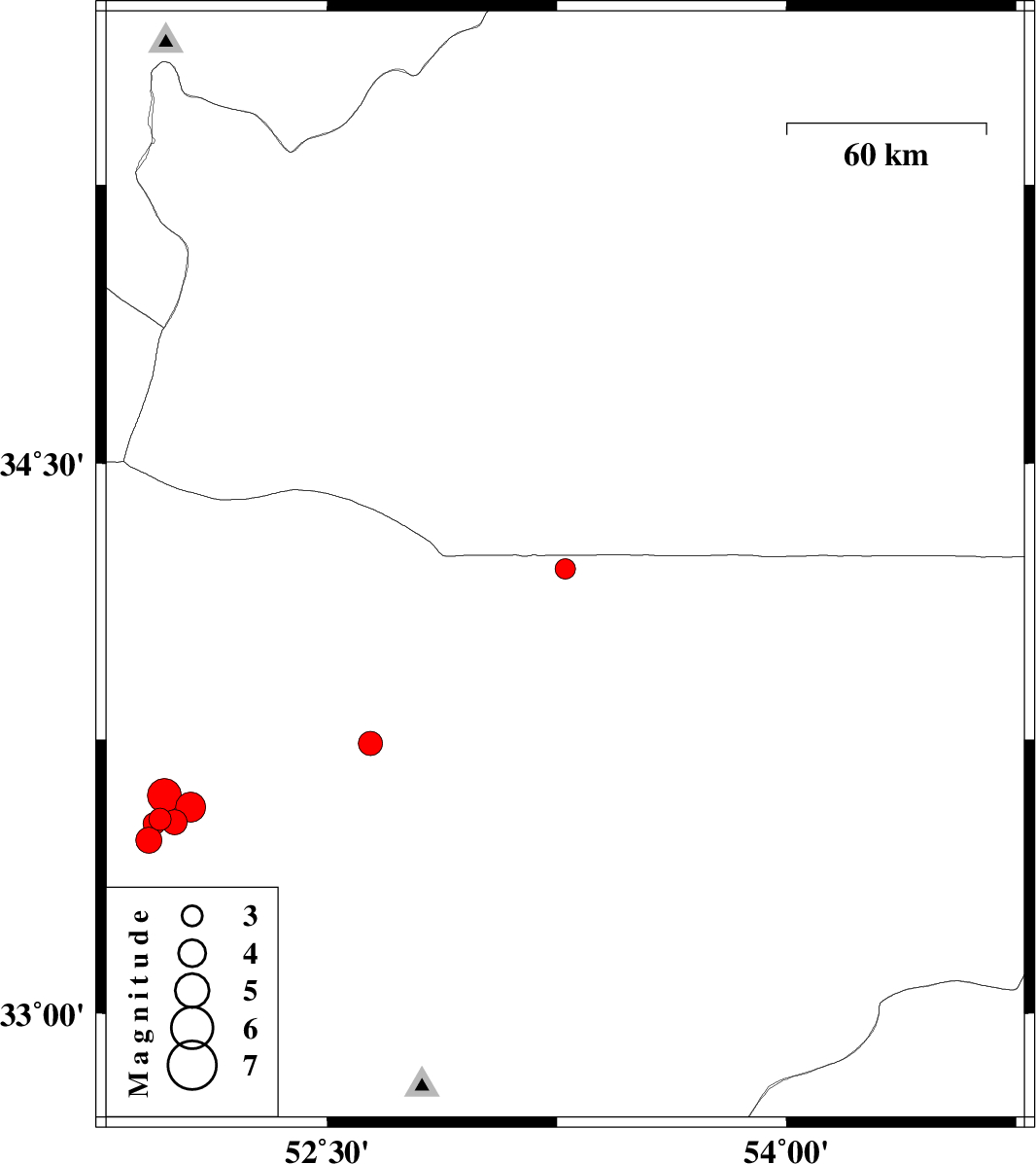| 2025/03/26 | 01:29:58.3 | 04:59:58.3 | 33.524 | 52.001 | 12 | ML3.7 | Esfahan Province, 8 km of Natanz | ||