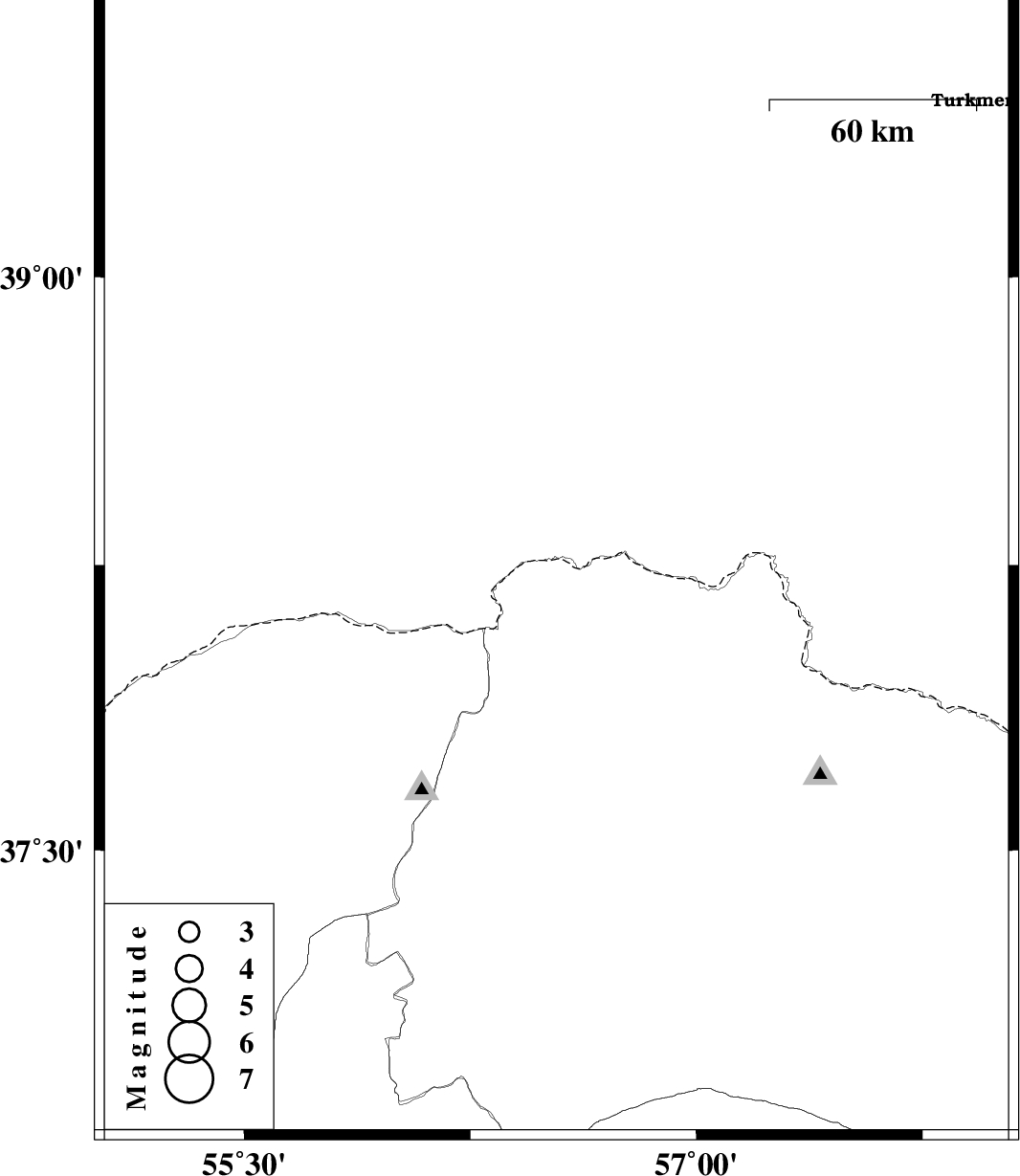 | 2025/04/18 | 07:20:04.1 | 10:50:04.1 | 38.258 | 56.536 | 15 | ML3 | Khorasan(north) Province, 86 km North-West of Ashkhaneh |