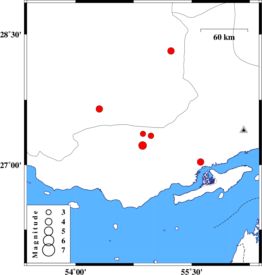 | 2025/03/22 | 23:43:10.3 | 03:13:10.3 | 27.035 | 55.614 | 12 | ML3.9 | Hormozgan Province, 65 km -West of Qeshm | ||
