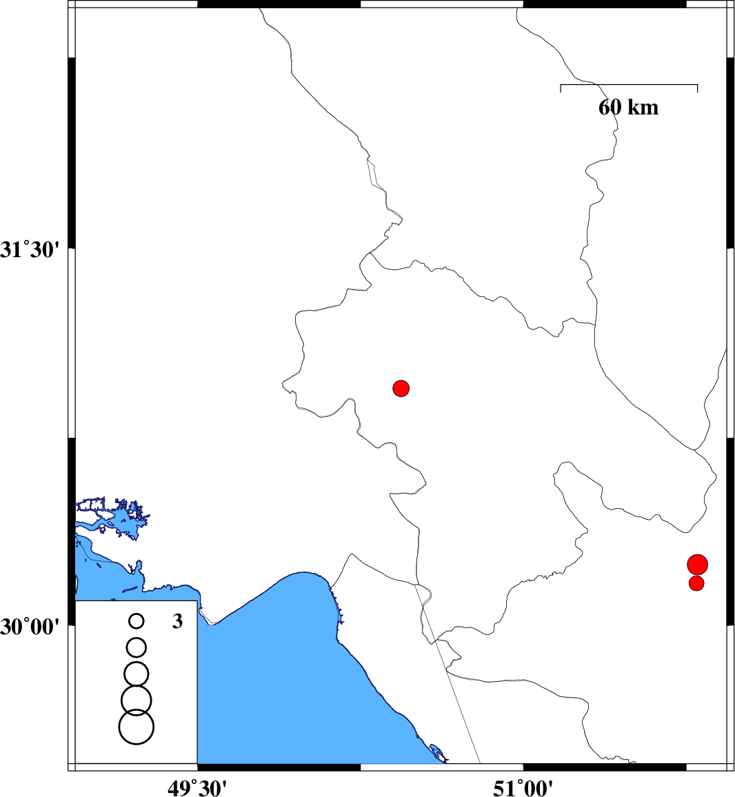 | 2025/04/22 | 17:41:16.7 | 21:11:16.7 | 30.945 | 50.436 | 12 | ML3.4 | Kohkiluieh va boyerahmad Province, 21 km North-West of Dehdasht | ||